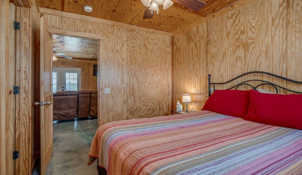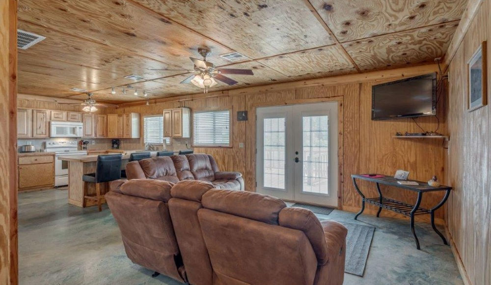 The Landing Zone is your personal haven of peace, offering a resplendent queen bed, twin accommodations for a restful slumber, and a full-size futon that beckons you to unwind. This cabin is an ode to leisure, with a bar countertop for gatherings and an outdoor patio where stories are shared around the firepit under the open sky. Indulge in the simple pleasure of togetherness at The Landing Zone.